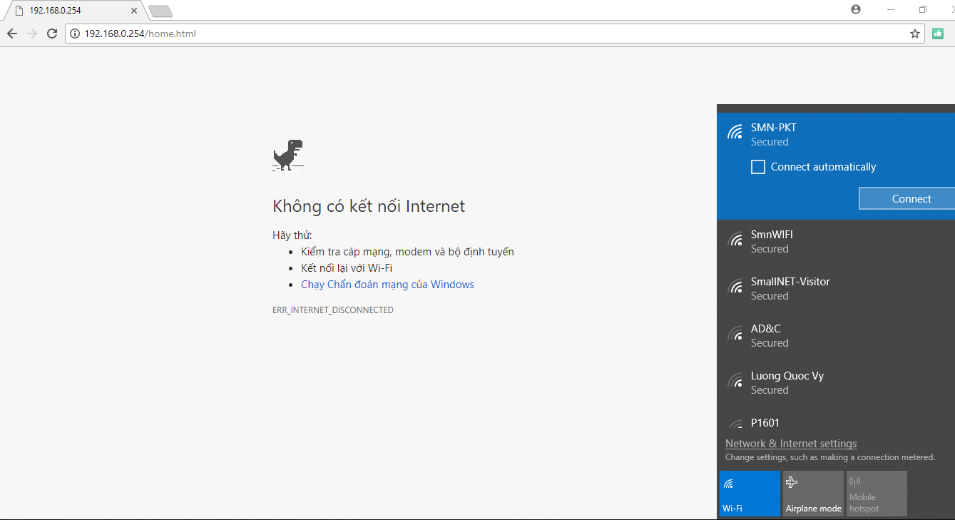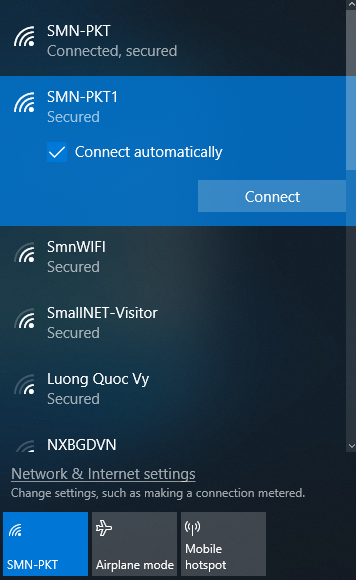 Ở bài này chúng tôi kết nối với wifi SMN-PKT là bộ phát wifi phòng kỹ thuật cty SmallNET